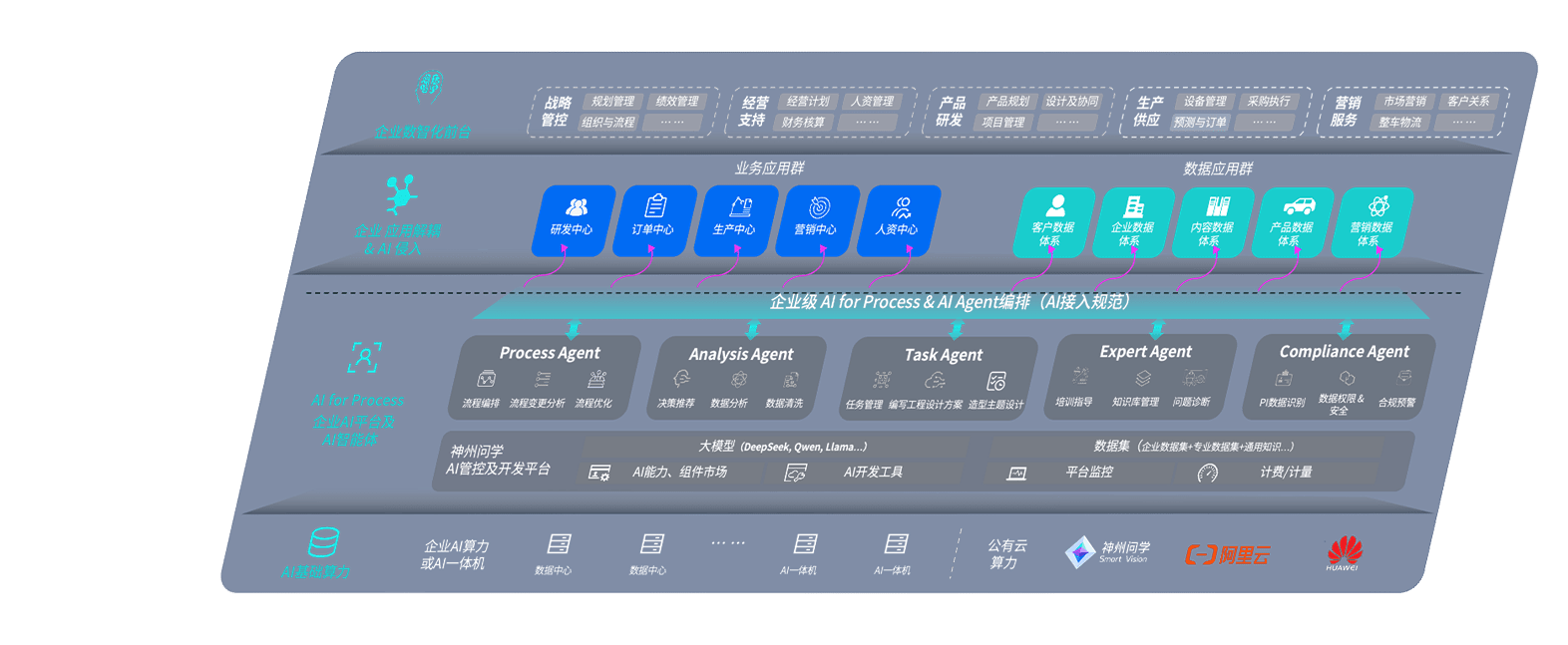 端到端的一站式AI工作空间深度融合了从企业战略规划到日常经营的全流程业务板块,,定向解决车企内部领域多、、、部门多、、、链条长、、、、场景碎片化等难题,,支持车企快速构建以AI为核心的生产力写作体系,,,实现任务执行与AI能力的无缝集成与交互
