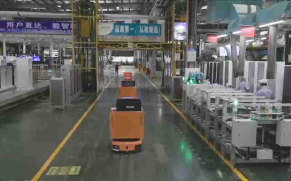 为车载冰箱物流配送打造的智能解决方案,,,包含产中物流通过潜伏举升AMR搬运至线边,,,产后成品物流智能仓储,,,,流程包含产中物流智能齐套入库,,,,线边安灯叫料AMR智能配送至线边,,,成品入库、、出库,,,通过无人堆高车机器人,,,,智能仓储管理替代人工作业管理,,,实现更高存储、、更高效率、、、、更具柔性化的解决方案。。。
